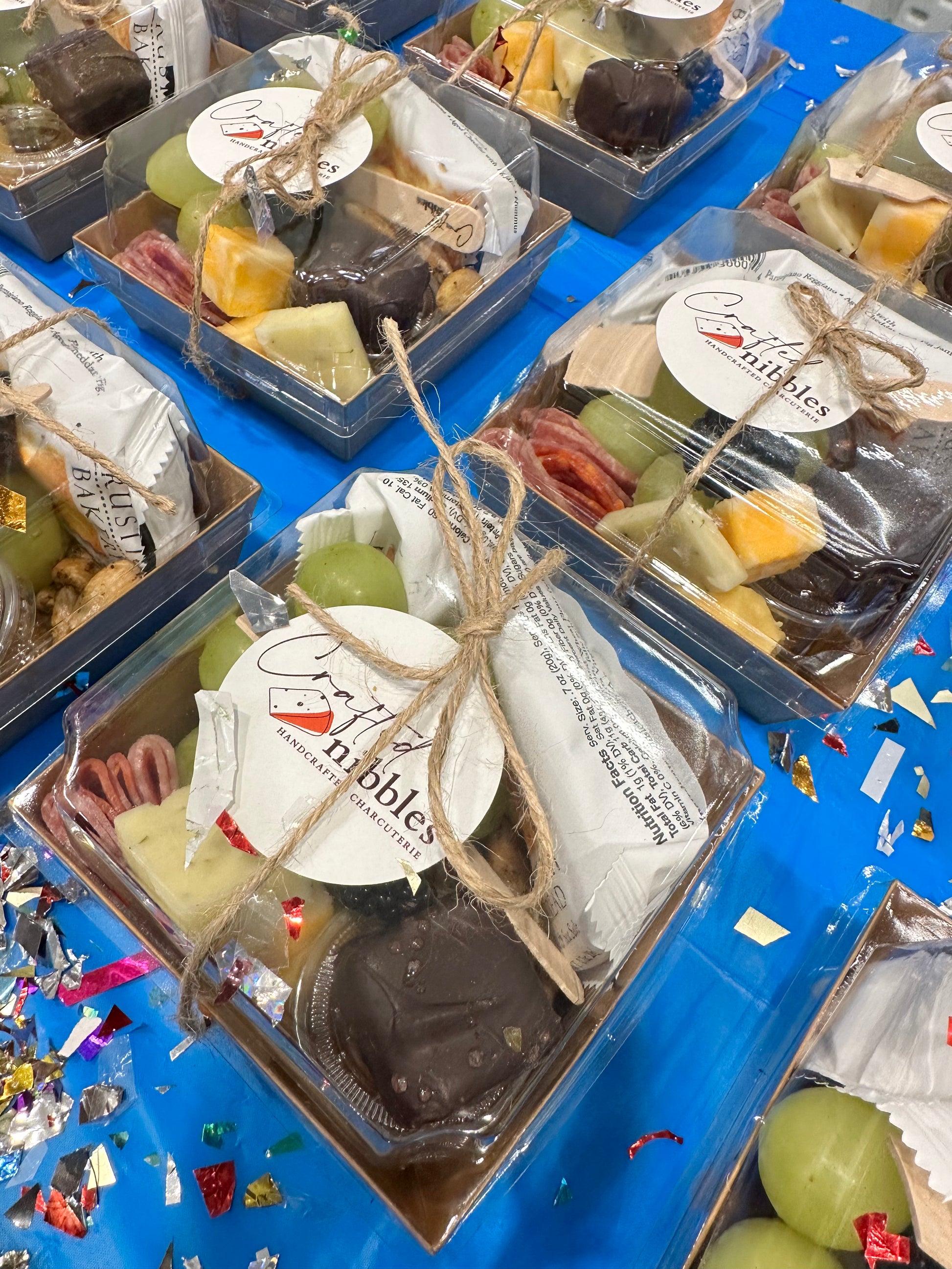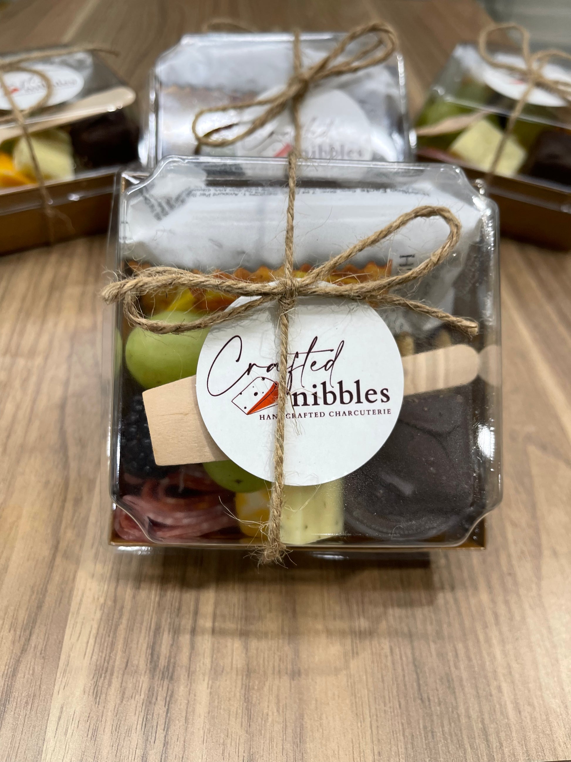 - Individual 4x4 charcuterie boxes 1 cheese, 1 charcuterie, nuts, fruit, and crackers. Perfect for in-office snacks or employee appreciation gifts!